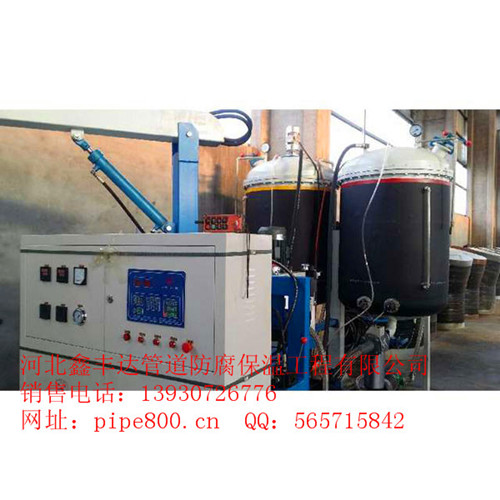 二步法保溫技術,該技術是在鋼管除銹、噴涂防腐層后,穿夾克皮管定位,再加發泡材料固化成型。設備成本低,適用各種口徑的鋼管管道。